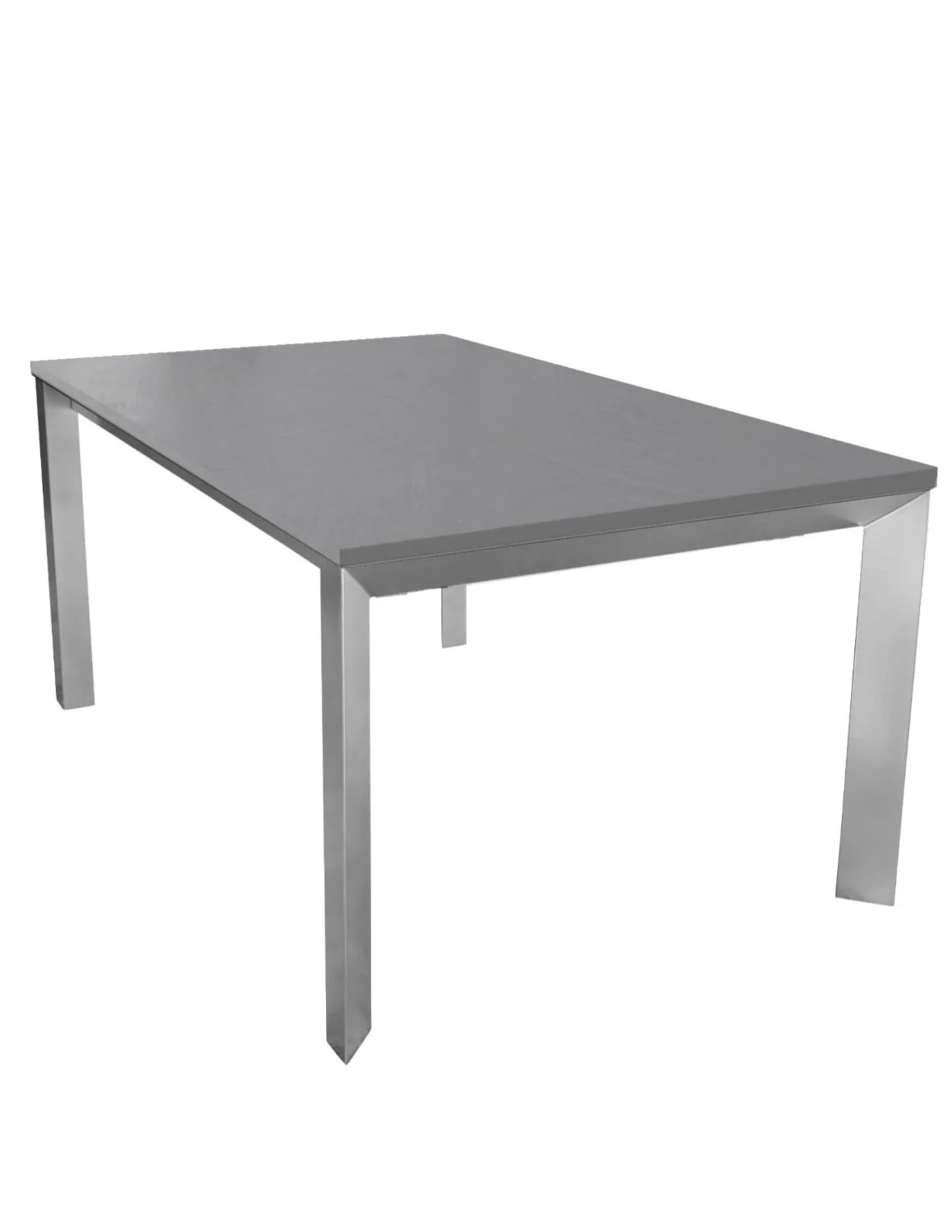 The Abode convertible extending dining table has a slim and sleek look. The table is built with quality steel hardware and stunning table tops that are all easy clean surfaces. Durable finishes in a colorway you prefer for your décor environment for Concrete texture or Glossy White, both being paired with silver legs. The legs aren’t just your plain, straight legs either – they are beveled with a eye pleasing edge to them, giving them a substantial look of quality and strength. The Abode has 2 extension lengths. Each extension is made of 2 halves. There are no visible hinges but when you extend out both extensions you will see 4 quadrants. The extensions hide inside the table when compacted. Wipe ups after a dinner are quick no matter if you keep this in your kitchen or dining area. Pairs well with 8 nano chairs as an bundle add on.
