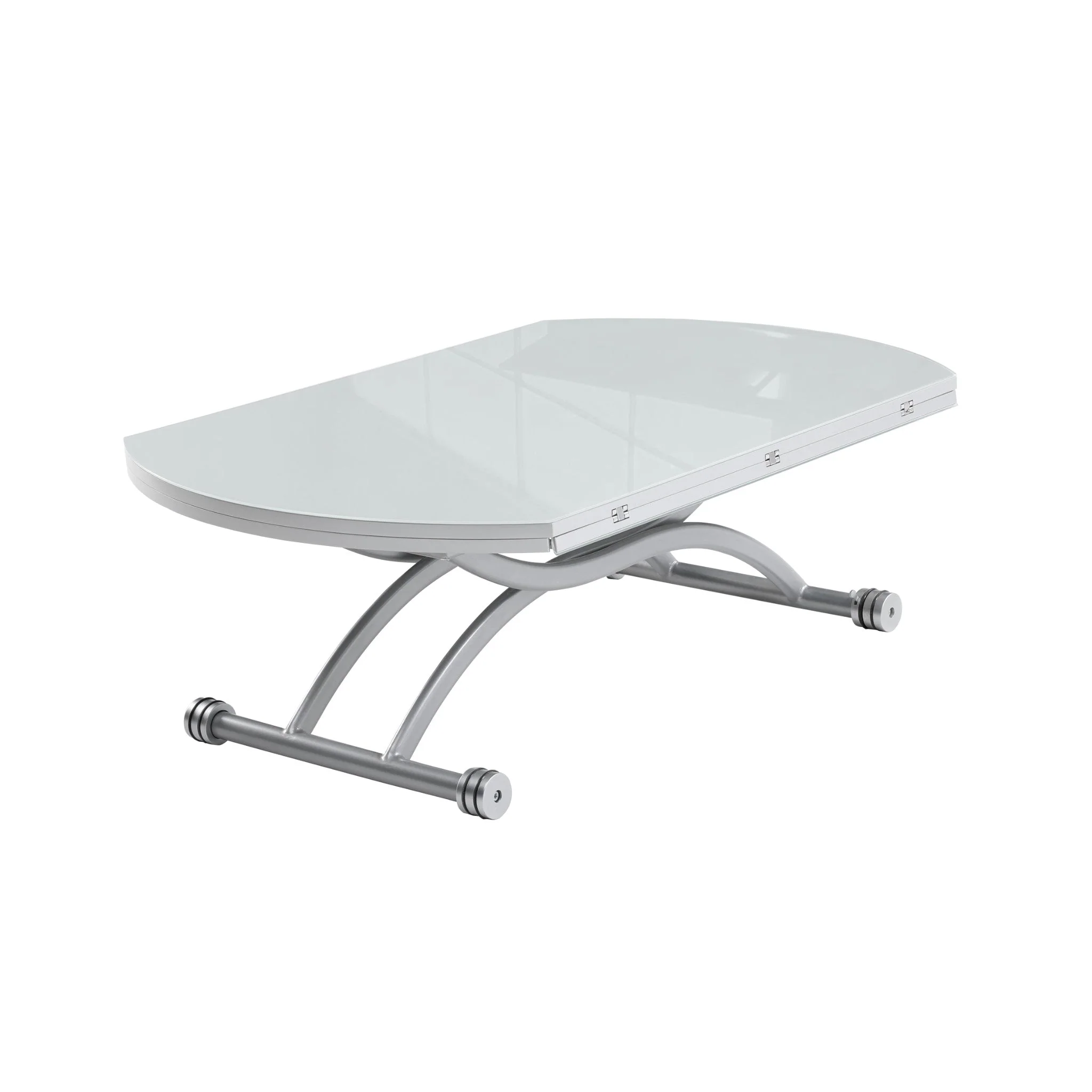 Looking for a space-saving table solution? The Chord is a round dining table with leaf extension built inside. A round table is already a very good idea for practical seating arrangements and it's even better when it can expand! Added features: height adjustable function through a lift mechanism with a low profile of 11 inches; drop down leaves to make the table more compact or larger; stylish easy-to-clean white or black glass top.