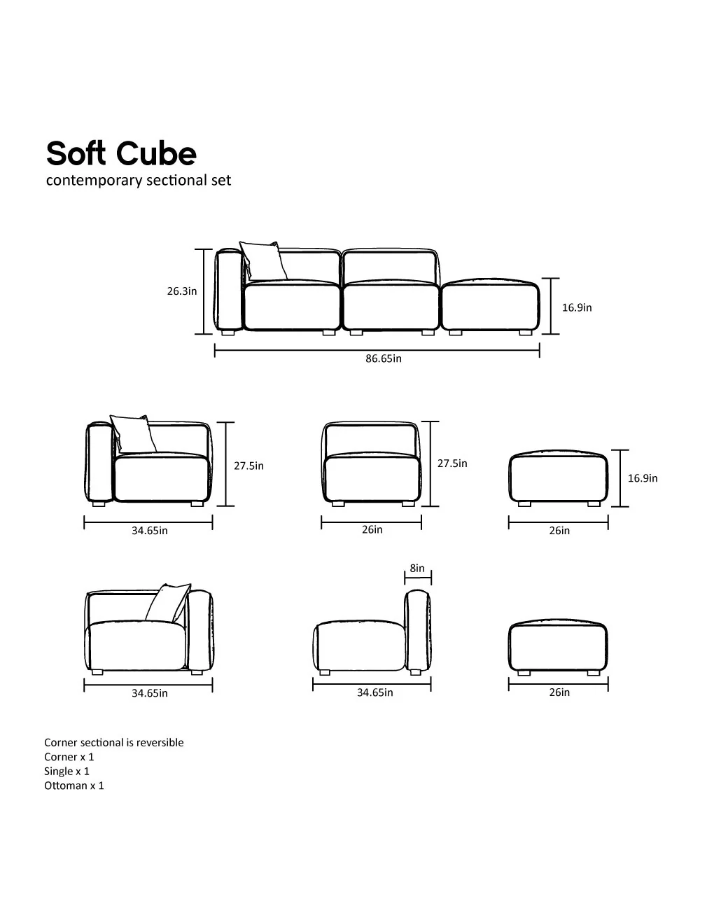 - Sets built with only 3 smart modules (Corner, Single, Ottoman)